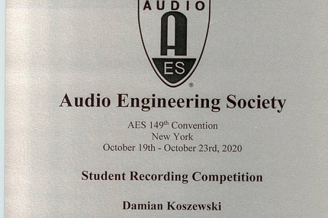 W październiku 2020 r. w Nowym Jorku odbyła się 149 konwencja Audio Engineering Society. Podczas konkursu Student Recording Competition, mgr inż. Damian Koszewski, doktorant Katedry Systemów Multimedialnych, jako jedyny Polak, który dostał się do finału konkursu, zdobył srebrny medal w kategorii Audio: Modern Studio ze swoim autorskim utworem.