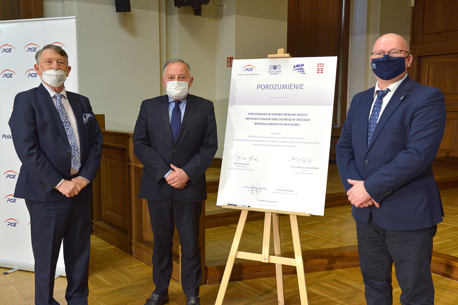 Umowę o współpracy w Auli Politechniki Gdańskiej podpisali: prof. Krzysztof Wilde, rektor PG, Peter Hauge Madsen, dyrektor wydziału Wind Energy Duńskiego Uniwersytetu Technicznego, prof. Jan Kiciński, dyrektor IMP PAN, a także Wojciech Dąbrowski, prezes zarządu PGE Polskiej Grupy Energetycznej. Wagę porozumienia podkreśliła obecność na uroczystości ambasadora Królestwa Danii w Polsce Ole Tofta oraz Juliana Skelnika, konsula Królestwa Danii w Gdańsku. Inicjatorem porozumienia był natomiast prof. Wojciech Litwin, dyrektor Instytutu Oceanotechniki i Okrętownictwa PG oraz prof. Paweł Flaszyński z IMP PAN.