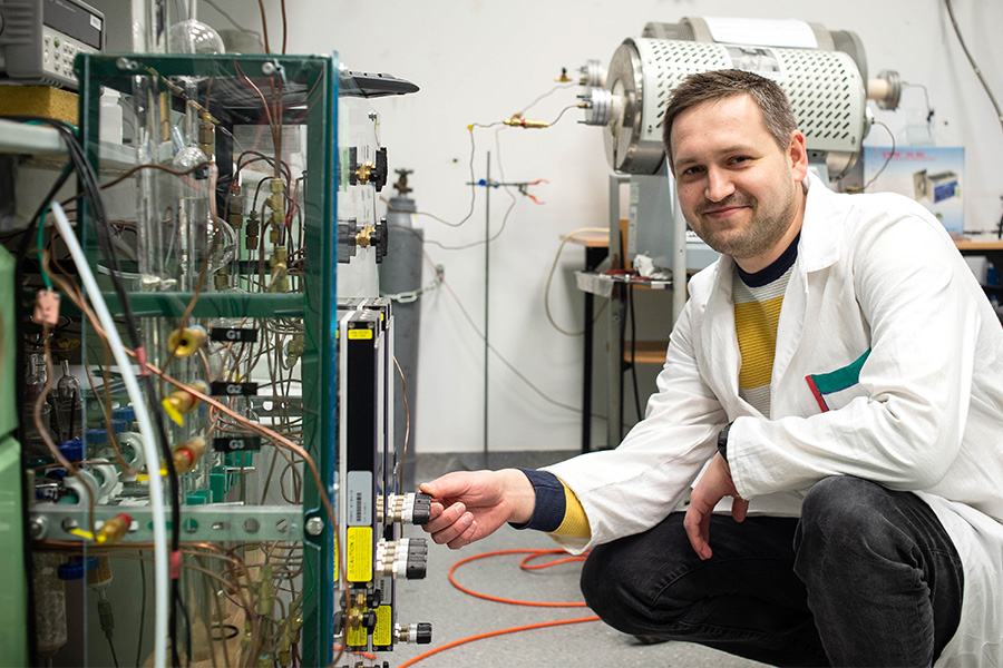 – Obecnie moja praca badawcza skupia się na wpływie odkształceń termicznych w perowskitowych cienkich warstwach na przewodnictwo protonowe – mówi naukowiec. – Celem badań jest znalezienie optymalnych materiałów, które można wykorzystać w ogniwach paliwowych, czyli urządzeniach generujących czystą energię elektryczną, tak aby zwiększać ich efektywność i wydajność.