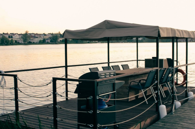 Pokład platformy mierzy 7 m × 2,8 m, a stelaż daszka w najniższym miejscu ma prawie 2m wysokości. Wyznaczona jest również przestrzeń o wymiarach 2,5 m × 2,8 m, na której stoją grill gazowy oraz trzy leżaki. Poza tym na platformie można również skorzystać ze stołu, ośmiu krzeseł, lodówki o pojemności ponad 40 l, gniazda zapalniczki oraz 6 portów USB do ładowania urządzeń elektronicznych, a także sterowanego pilotem oświetlenia LED.