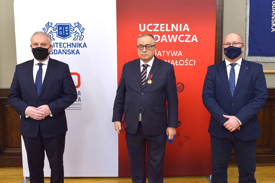 W imieniu Prezydenta Rzeczpospolitej Polskiej aktu odznaczenia wyróżnionych osób dokonał Dariusz Drelich, wojewoda pomorski w obecności prof. Krzysztofa Wilde, rektora PG.