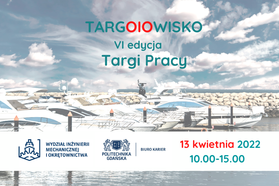 Biuro Karier PG oraz Wydział Inżynierii Mechanicznej i Okrętownictwa zapraszają na Targoiowisko – Wydziałowe Targi Pracy, które odbędą się 13 kwietnia, w godz. 10:00-15:00, w budynku Instytutu Oceanotechniki i Okrętownictwa Politechniki Gdańskiej.