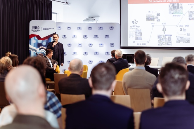 Podczas drugiej sesji pt. „Rozwój technologii w spółce spin-off na przykładzie W2H2 sp. z o.o. i innowacyjnego reaktora do pirolizy” swoimi doświadczeniami dzielili się: profesor Bogusław Kusz z Wydziału Fizyki Technicznej i Matematyki Stosowanej PG oraz Sławomir Ćwikliński broker innowacji z CTT. Profesor przedstawił najważniejsze wydarzenia i kamienie milowe na dotychczasowej drodze rozwoju technologii pirolizy, podkreślając istotną rolę dofinansowań z programu Inkubator Innowacyjności oraz wsparcia merytorycznego ze strony Centrum Transferu Technologii PG. Mimo cyklu niekorzystnych zdarzeń, które miały miejsce w ostatnim czasie i niepewności co do dalszego możliwości rozwoju technologii w spółce, profesor podkreślił, iż najważniejsza w procesie komercjalizacji jest gra zespołowa oraz chęć współpracy, a także zaufanie pracownika naukowe do brokera CTT.