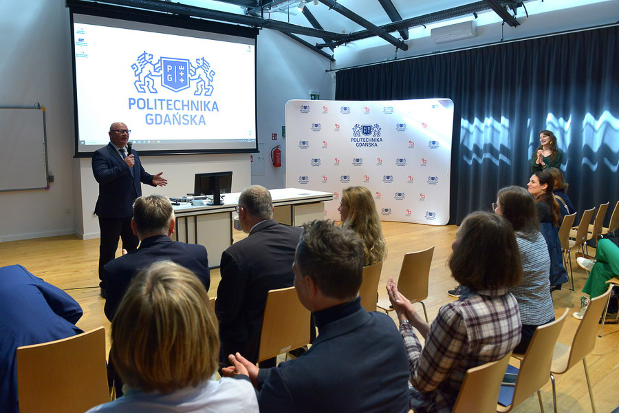 Po krótkim zwiedzaniu kampusu pod przewodnictwem kustosz – dr Anny Lepackiej goście udali się do sali konferencyjnej budynku Hydromechaniki, gdzie zostali powitani przez prof. Krzysztofa Wildego, rektora Politechniki Gdańskiej, a ambasador Fabirice Filliez wygłosił krótkie przemówienie.