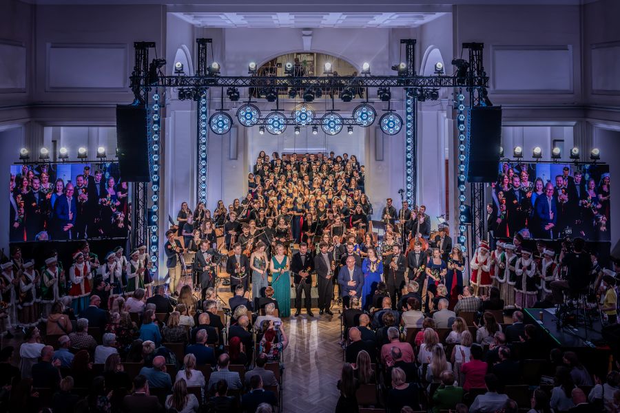 A potem Gmach Główny wypełniła muzyka i śpiew. W koncercie udział wzięli: soliści – studenci Akademii Muzycznej w Gdańsku: Artem Storozhuk, Tatiana Lavrik, Marta Kur, Łukasz Załęski, Maciej Mielewczyk, Anna Mosakowska, Mikołaj Zgódka, Bartłomiej Kłos, Paweł Miotke, Jagoda Staruch, Piotr Łęcki oraz Kornelia Waśniewska, gościnnie Orkiestra Symfoniczna Akademii Muzycznej w Bydgoszczy, Zespół Pieśni i Tańca "Jantar" Uniwersytetu Gdańskiego oraz Akademicki Chór Politechniki Gdańskiej, a wszyscy oni zaśpiewali i zagrali pod batutą prof. Mariusza Mroza. Koncert poprowadził aktor i konferansjer Krzysztof Dąbrowski.