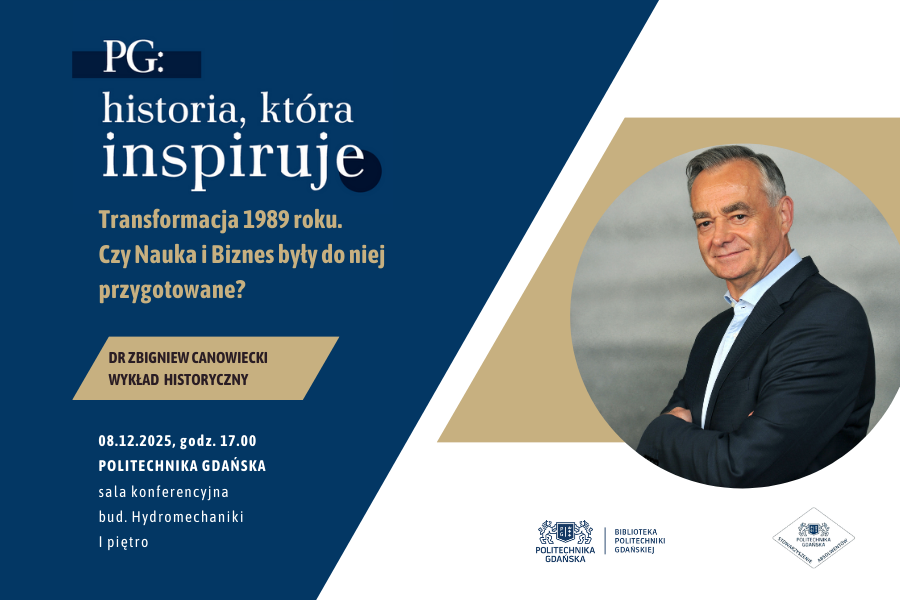 8 grudnia o godz. 17.00 w sali konferencyjnej Hydromechaniki odbędzie się wykład dr. Zbigniewa Canowieckiego – laureata tytułu Osobowość Politechniki Gdańskiej 2024, absolwenta Wydziału Elektroniki (obecnie Wydziału Elektroniki, Telekomunikacji i Informatyki) PG, Prezydenta „Pracodawców Pomorza” w kadencji 2022–2025 oraz przewodniczącego Konwentu Gospodarczego przy Związku Uczelni w Gdańsku im. Daniela Fahrenheita.