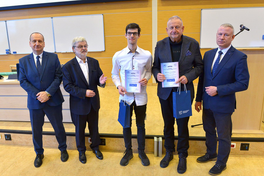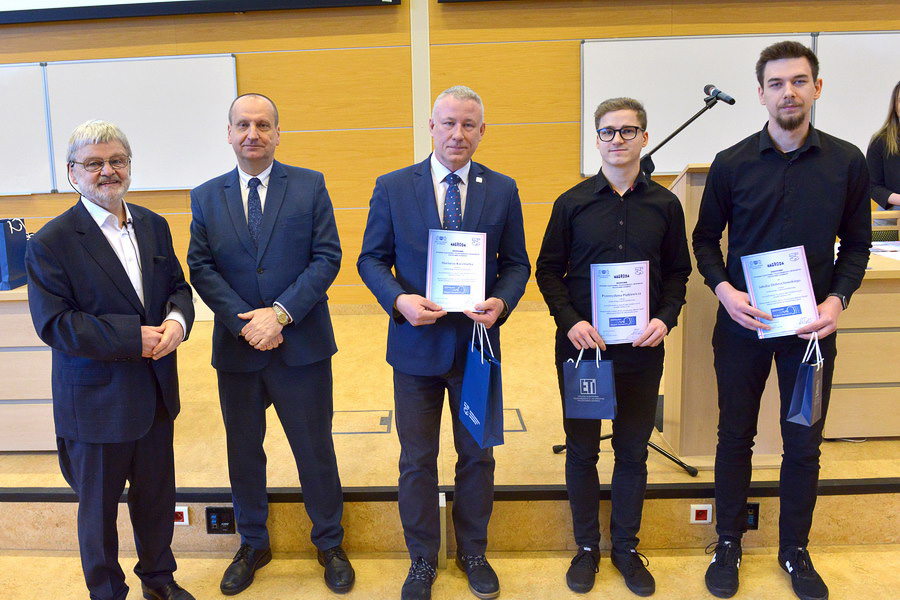 Wyróżnienie: Określanie prawdopodobieństwa przynależności pacjentów do grupy ryzyka pod względem występowania tętniaka mózgu wykorzystując metody uczenia maszynowego, studenci: Piotr Hajduk – kierownik, Kanstantsin Kalenik, Paweł Rybczyński, Wiktoria Nawrocka realizujący projekt pod tytułem, opiekun projektu: dr inż. Patryk Jasik