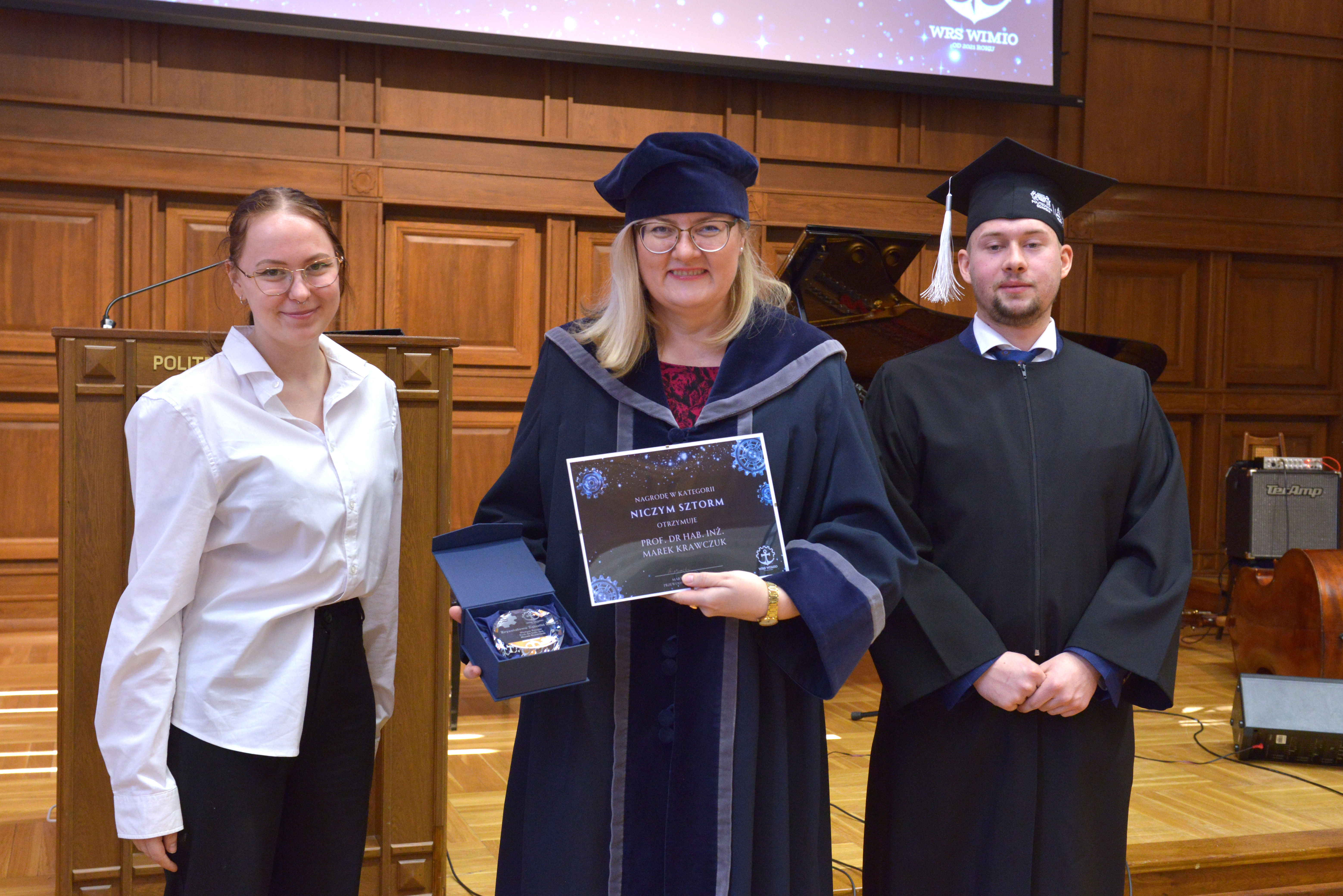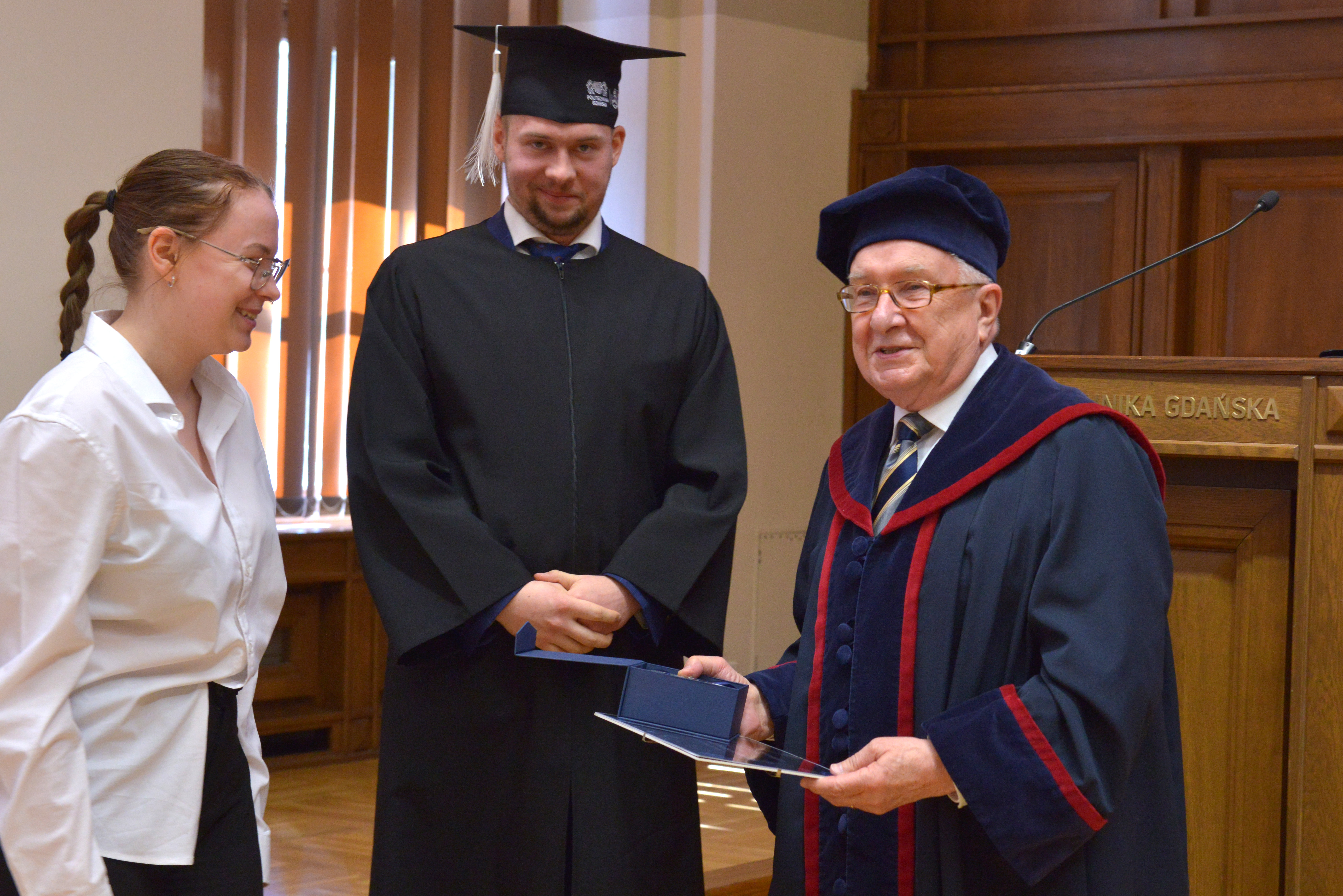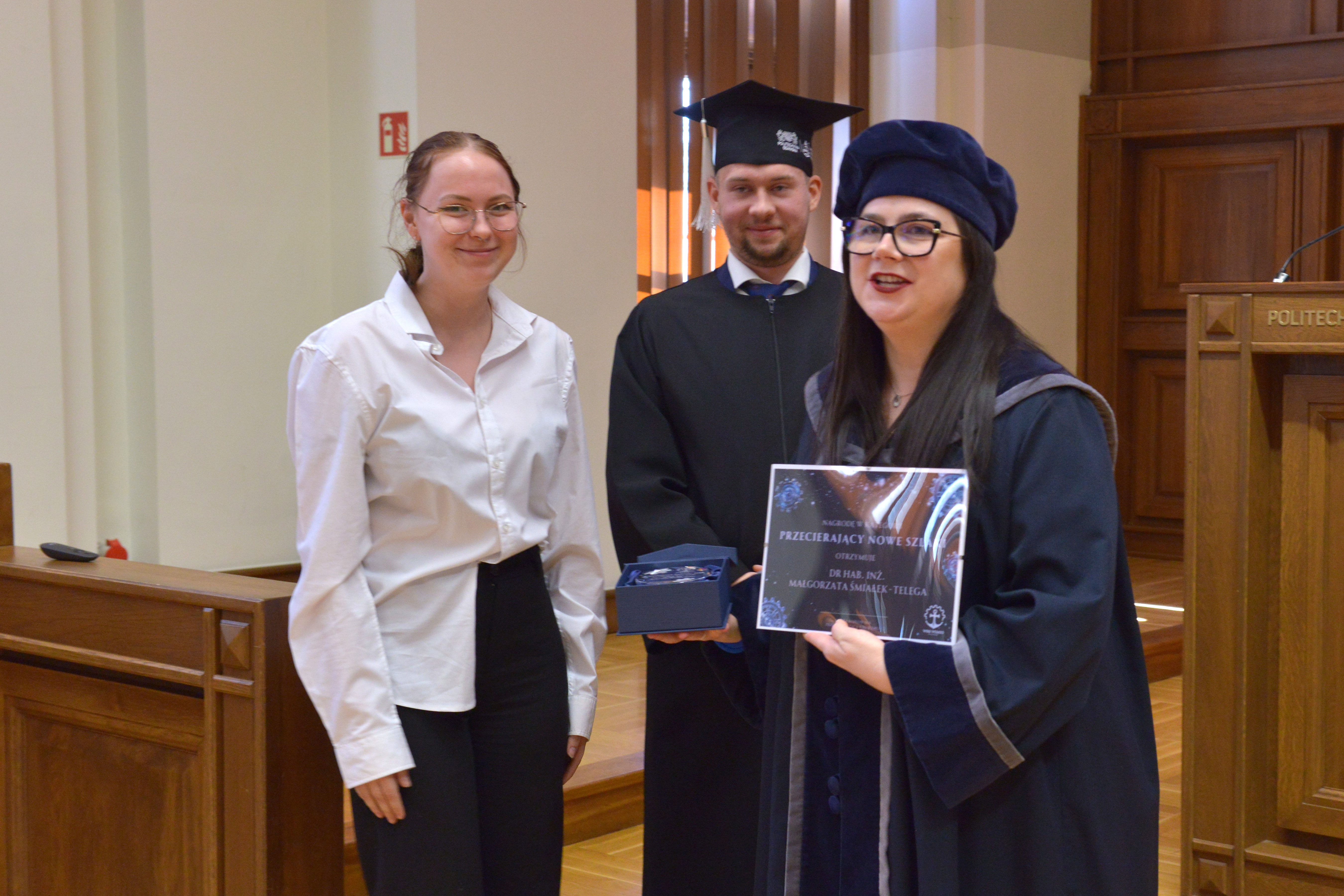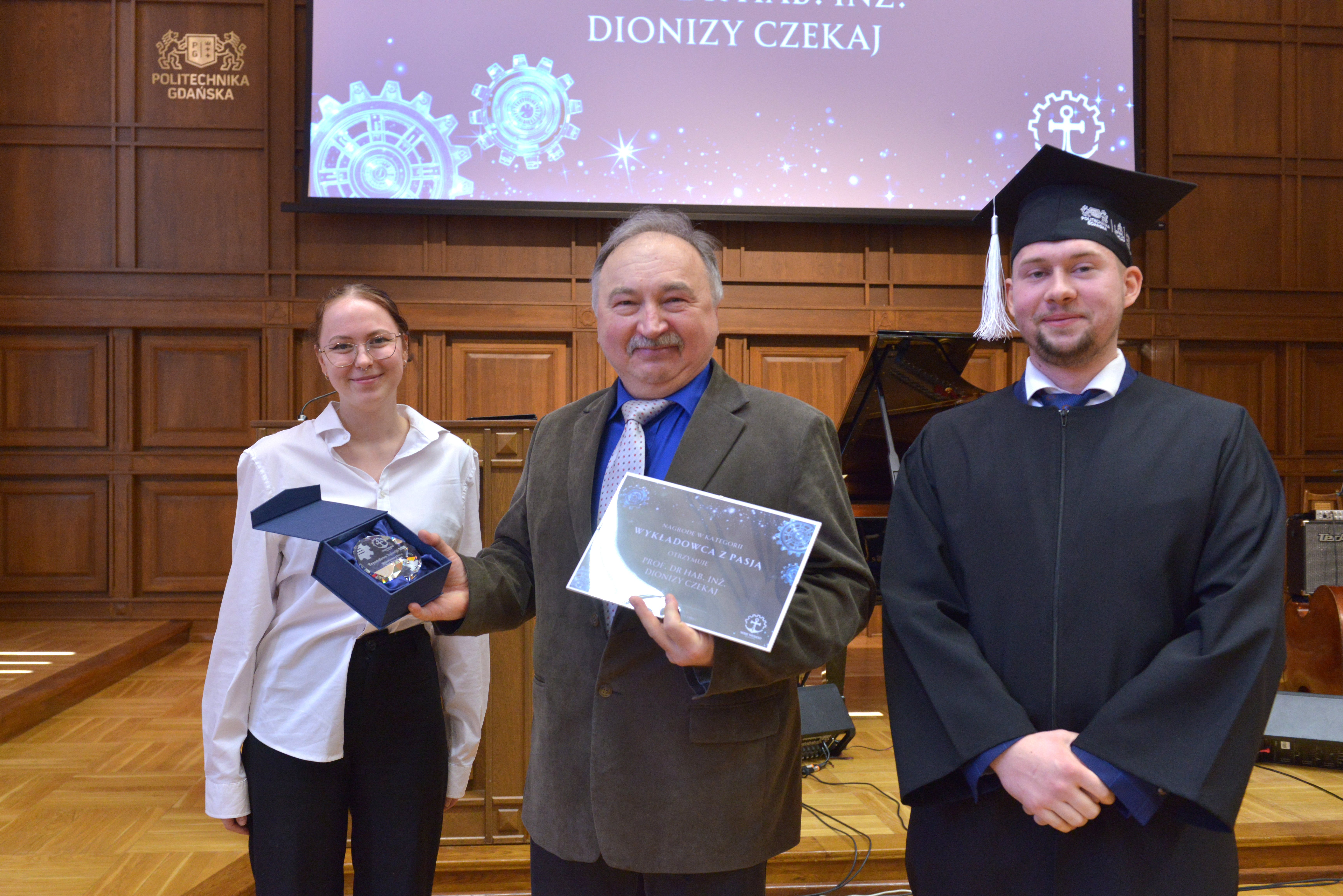 Nagrody wręczyli dziekan WIMiO prof. Mariusz Deja, prorektor ds. kształcenia prof. Mariusz Kaczmarek oraz prof. Piotr Grudowski, prezes PTZP z oddziałem w Gdańsku.