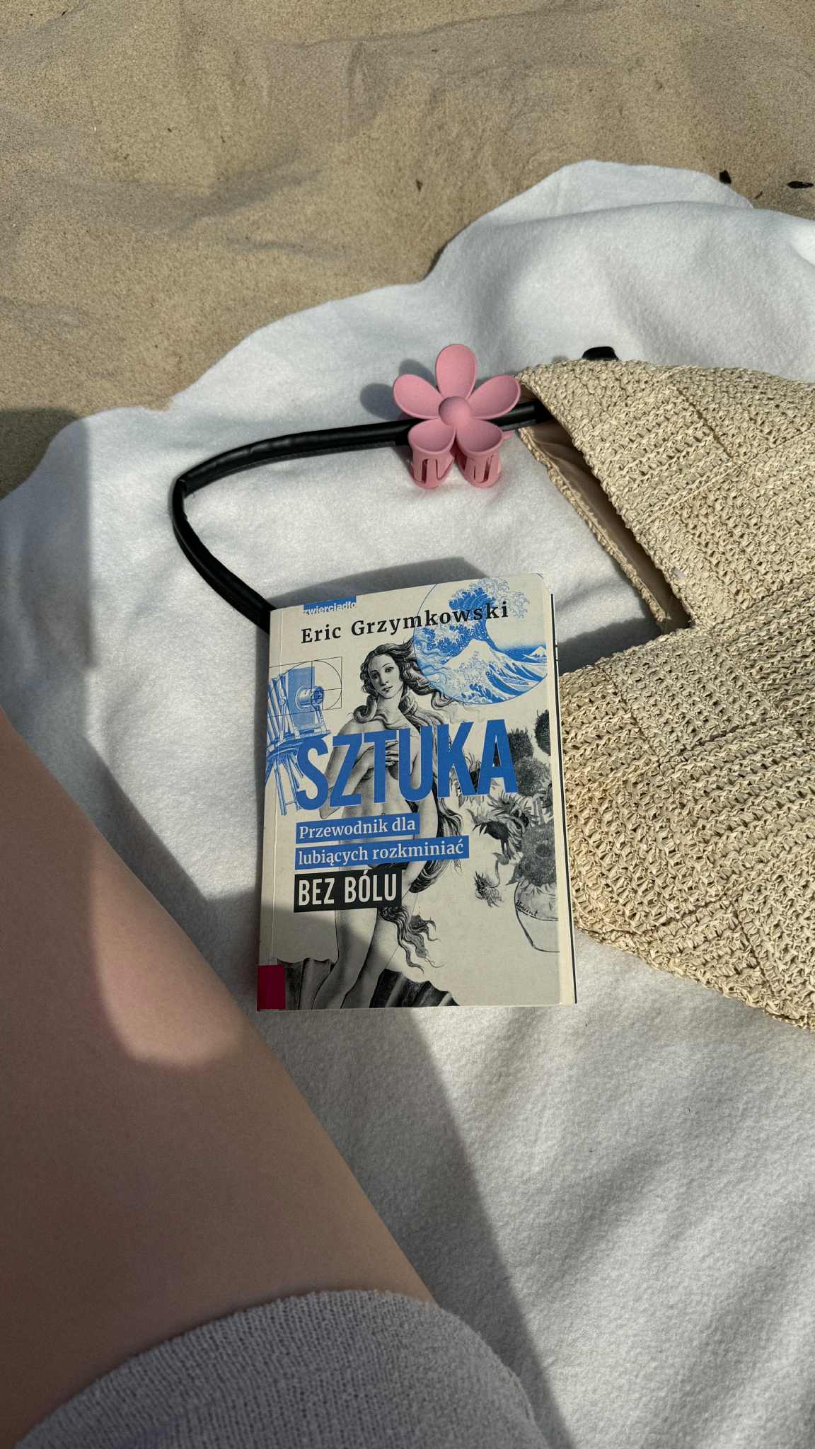 Od Autorki zdjęcia: "Z racji, że w te wakacje nigdzie nie udało mi się wyjechać, fotografię wykonałam w Gdańsku na plaży w Brzeźnie któregoś słonecznego dnia. Choć na plaży lepiej spędza się czas z przyjaciółmi, to szczerze uwielbiam samotne chwile z książką i szumem fal w tle. Do przeczytania wybrałam tę książkę, ponieważ jestem stałym bywalcem różnych muzeów i wystaw, więc stwierdziłam, że z książki o świecie sztuki dowiem się wielu ciekawych rzeczy, które pozwolą mi lepiej zrozumieć zamysł i intencje artystów oraz poszczególne style i techniki jakimi się posługiwano od lat, aby móc je łatwo rozpoznać. Z książki wyciągnęłam informacje na temat wielkich artystów takich jak, Claude Monet, Jackson Pollock, Salvador Dali, Pablo Picasso czy Leonardo Da Vinci. W czym tkwi piękno Mona Lisy. Szczególnie zaskoczyła mnie postać Mariny Abramović, o której wcześniej nie słyszałam, a jej sztuka jest kontrowersyjna. Mój ulubiony cytat z książki: «Jeśli znajdziesz na ziemi rozbite lustro i powiesisz je na ścianie, to czy jest to już sztuka?» Jakby się nad tym zastanowić, obecnie sztuka to bardzo szerokie pojęcie i każdy ma własny sposób jej interpretacji. Dla kogoś rozbite lustro będzie zwykłym, zepsutym przedmiotem, a inni mogą zauważyć jakąś niezwykłość w załamywaniu padającego światła i uważać to za piękno. Sztuka nowoczesna na pewno daje duże możliwości. Teraz WSZYSTKO może być uznawane za sztukę. Zależy to tylko od punktu widzenia. Podsumowując, lektura była interesująca, pełna refleksji i innego spojrzenia. Cieszę się, że miałam możliwość jej przeczytania".