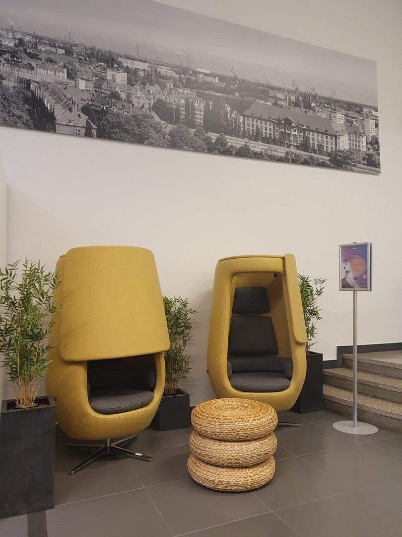 Fotele akustyczne, które pozwalają na chwilę skupienia lub spokojny odpoczynek między zajęciami, znajdziesz w Czytelni Głównej oraz filiach Biblioteki PG:
