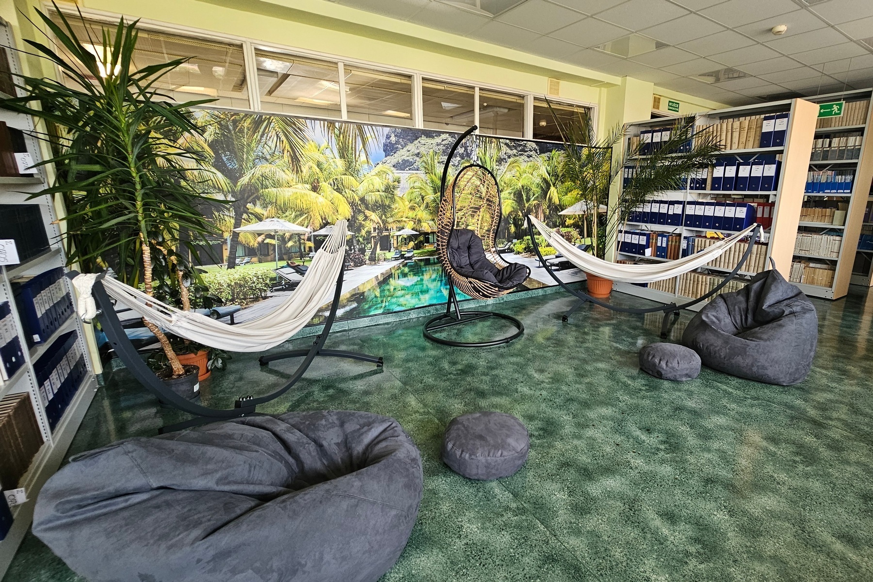 Wygodne fotele, hamaki, pufy i przestrzenie do rozmów sprzyjają odpoczynkowi, integracji i dobrym pomysłom.