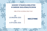 Drodzy Użytkownicy, informujemy, że w dniach 20.12.2025 – 6.01.2026 Biblioteka Główna oraz filie będą nieczynne. Zapraszamy ponownie 7.01.2026 r. Bieżące ogłoszenia i komunikaty dostępne są w zakładce Godziny otwarcia.