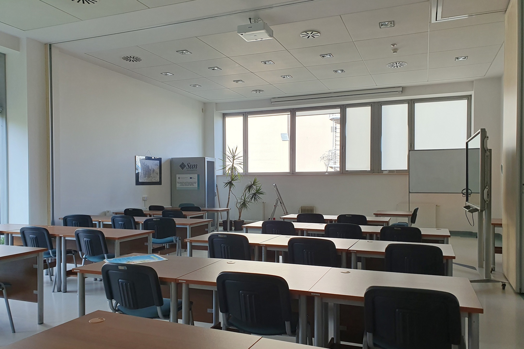 - wyposażenie: 70'' monitor, biała tablica, rzutnik (wymagane wejście VGA)