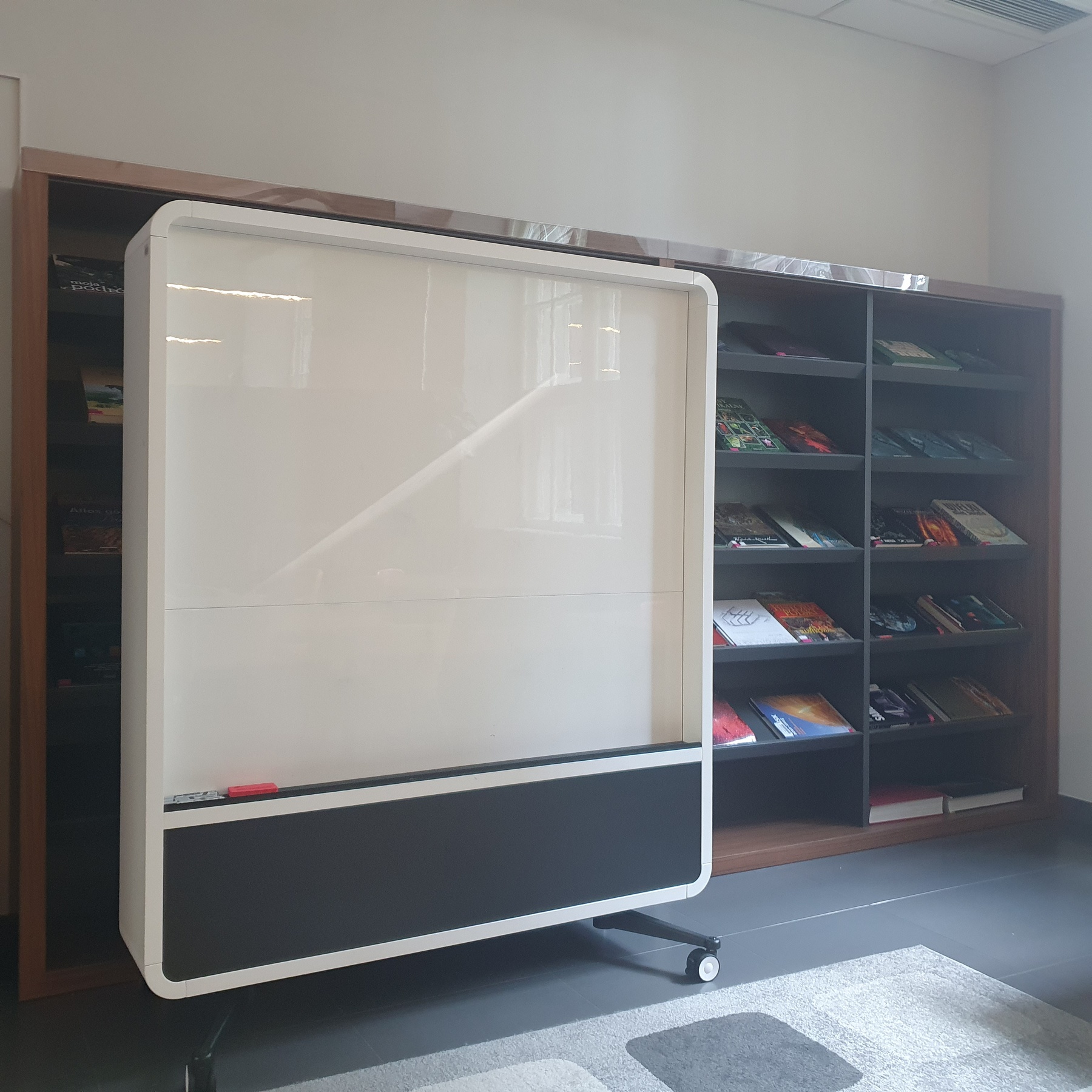 - wyposażenie: regulowane oświetlenie LED oraz wentylacja uruchamiana czujnikiem obecności, gniazdo o napięciu 230V, 2 porty USB, kabel sieciowy RJ45, uchwyt do powieszenia telewizora w celu wyświetlenia prezentacji