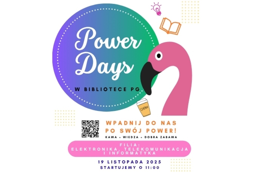 Biblioteka Politechniki Gdańskiej zaprasza studentów Wydziału Elektroniki, Telekomunikacji i Informatyki na wydarzenie z cyklu POWER Days – już 19 listopada 2025 r. (środa) w godz. 11:00–14:00 w filii Biblioteki PG: Elektronika, Telekomunikacja i Informatyka.