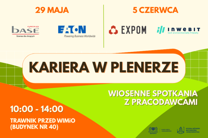Biuro Karier i Absolwentów wraz z Wydziałem Inżynierii Mechanicznej i Okrętownictwa Politechniki Gdańskiej zapraszają studentów, doktorantów oraz absolwentów do udziału w kolejnej edycji wydarzenia Kariera w Plenerze – inicjatywy mającej na celu wspieranie młodych osób w planowaniu i rozwoju kariery zawodowej poprzez bezpośredni kontakt z przedstawicielami firm. Aby stworzyć sprzyjające warunki do rozmów i budowania relacji zawodowych, wydarzeniu towarzyszyć będzie strefa wypoczynku oraz poczęstunek przygotowany przez zaproszone firmy.