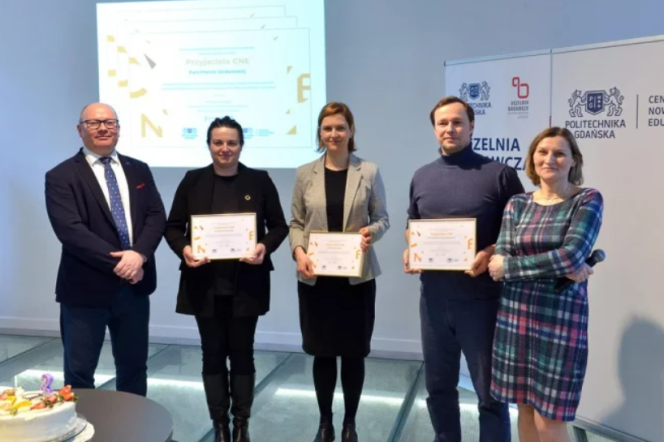 Specjalną nagrodę wręczył J.M. Rektor Politechniki Gdańskiej, prof. Krzysztof Wilde, oraz Dyrektor CNE, prof. Joanna Mytnik. Tytuły "Przyjaciela CNE" pracownicy CAS otrzymali za wspieranie działań CNE oraz aktywne promowanie idei nowoczesnego kształcenia, pomoc w realizacji celów CNE oraz uśmiech i życzliwość. Warto podkreślić współpracę pracowników obu jednostek w ramach projektu "Doskonałość Dydaktyczna Uczelni" oraz zakończonego projektu "Zintegrowany Program Rozwoju Politechniki Gdańskiej" (POWER 3.5).