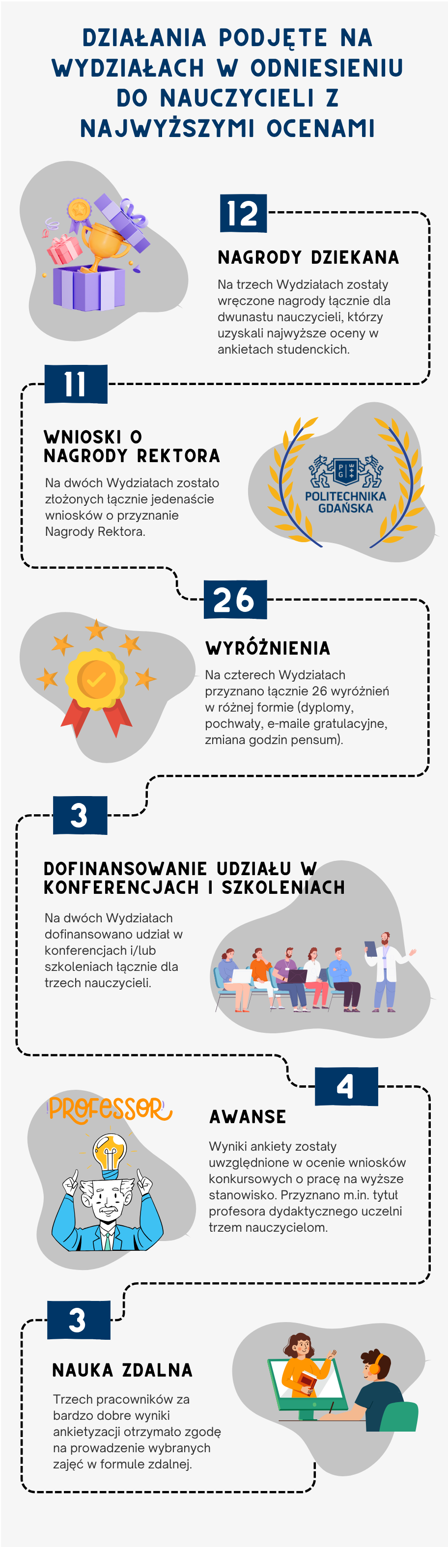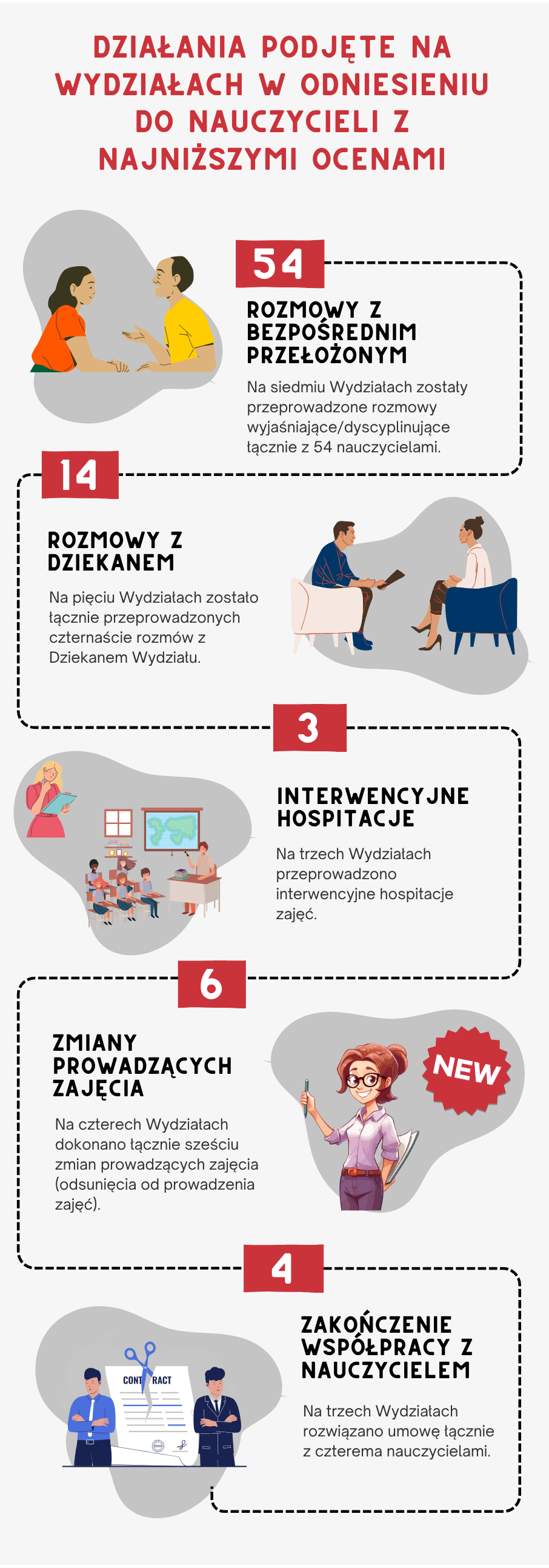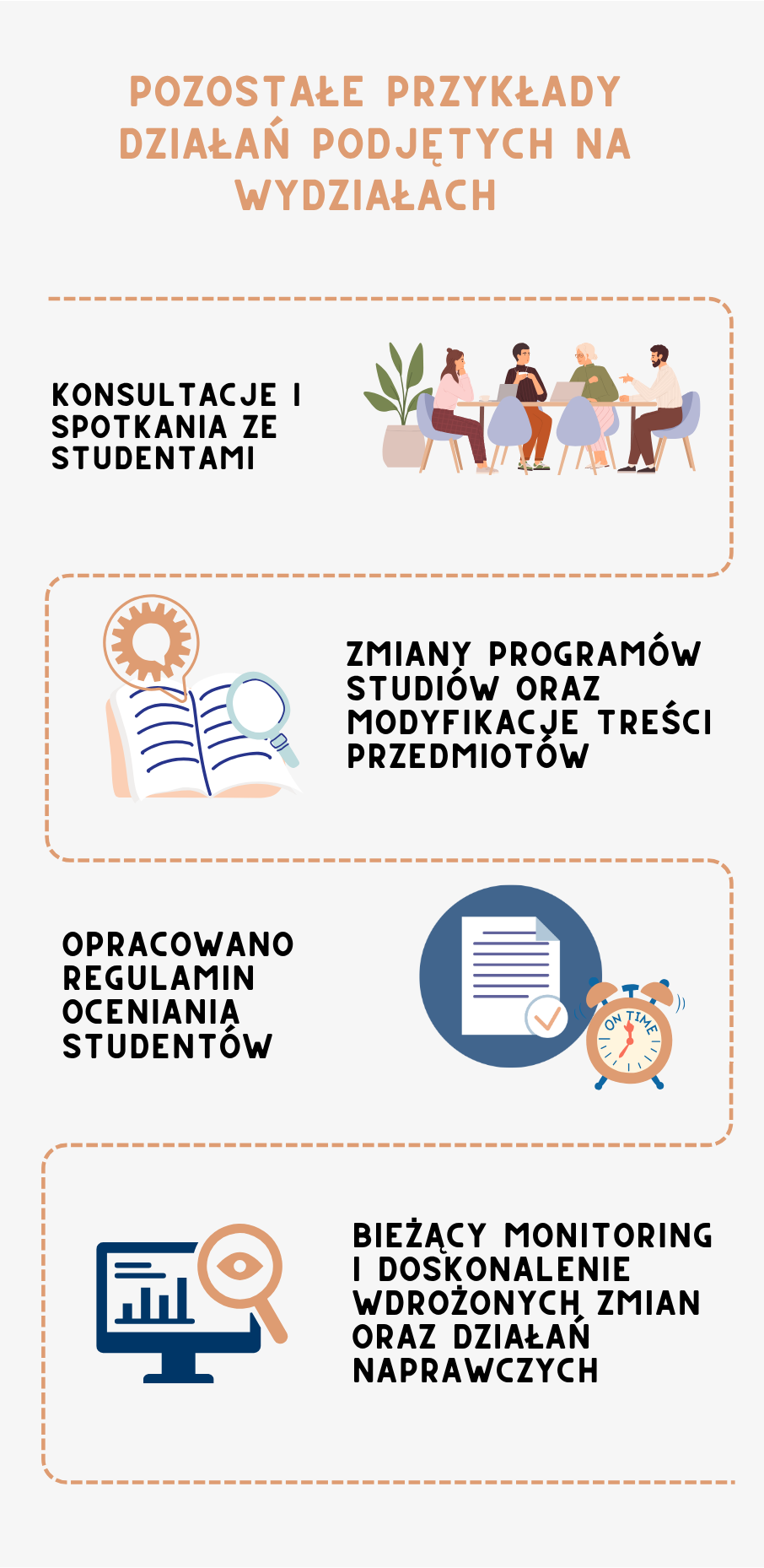 Poniżej prezentujemy działania podjęte na Wydziałach na podstawie wyników ostatniej ankietyzacji przeprowadzonej w semestrze zimowym 2024/25.