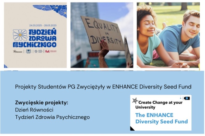 Z dumą informujemy, że dwa inspirujące projekty stworzone przez studentów Politechniki Gdańskiej zostały nagrodzone w ramach ENHANCE Diversity Seed Fund – inicjatywy wspierającej innowacyjne działania na rzecz różnorodności i integracji w środowiskach akademickich w całej Europie.