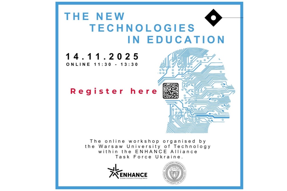 We warmly invite students, academic teachers, and university staff from the ENHANCE Alliance and partner Ukrainian institutions (Igor Sikorsky Kyiv Polytechnic Institute & Lviv Polytechnic National University) to join a special online event: “New Technologies in Education” organised by Politechnika Warszawska as part of the ENHANCE Task Force Ukraine.