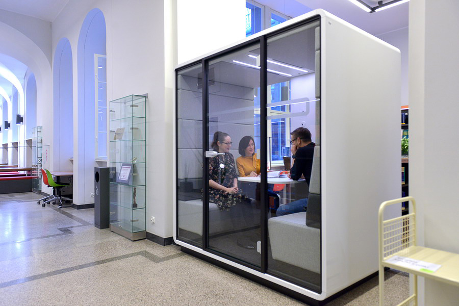The Gdańsk Tech Library offers spaces for individual and group work that can be used by students and employees of Gdańsk University of Technology. The spaces have equipment to suit the different needs of users.