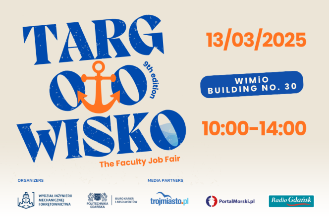 From 11:00 AM to 1:00 PM, we invite you to room 410 for a special session, where graduates of the Faculty of Mechanical Engineering and Ship Technology—now working in leading maritime companies—will share their career experiences and professional development opportunities. The meeting will be conducted in Polish.