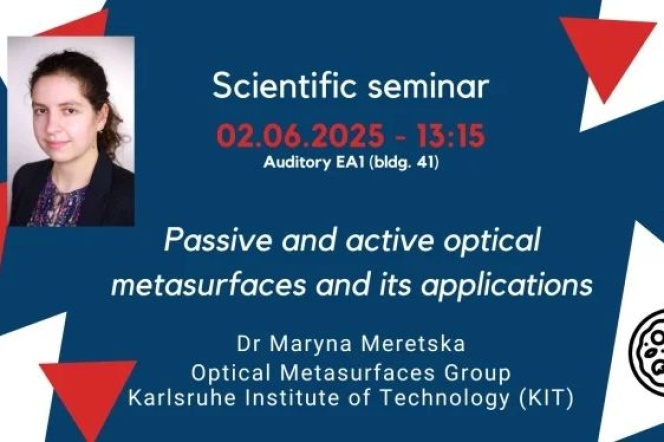 The guest of the Advanced Materials Centre, Dr. Maryna Meretska, is a leader of the Optical Metasurfaces at Karlsruhe Institute of Technology (KIT) in Germany. She will present a lecture entitled "Passive and Active Optical metasurfaces and its applications".