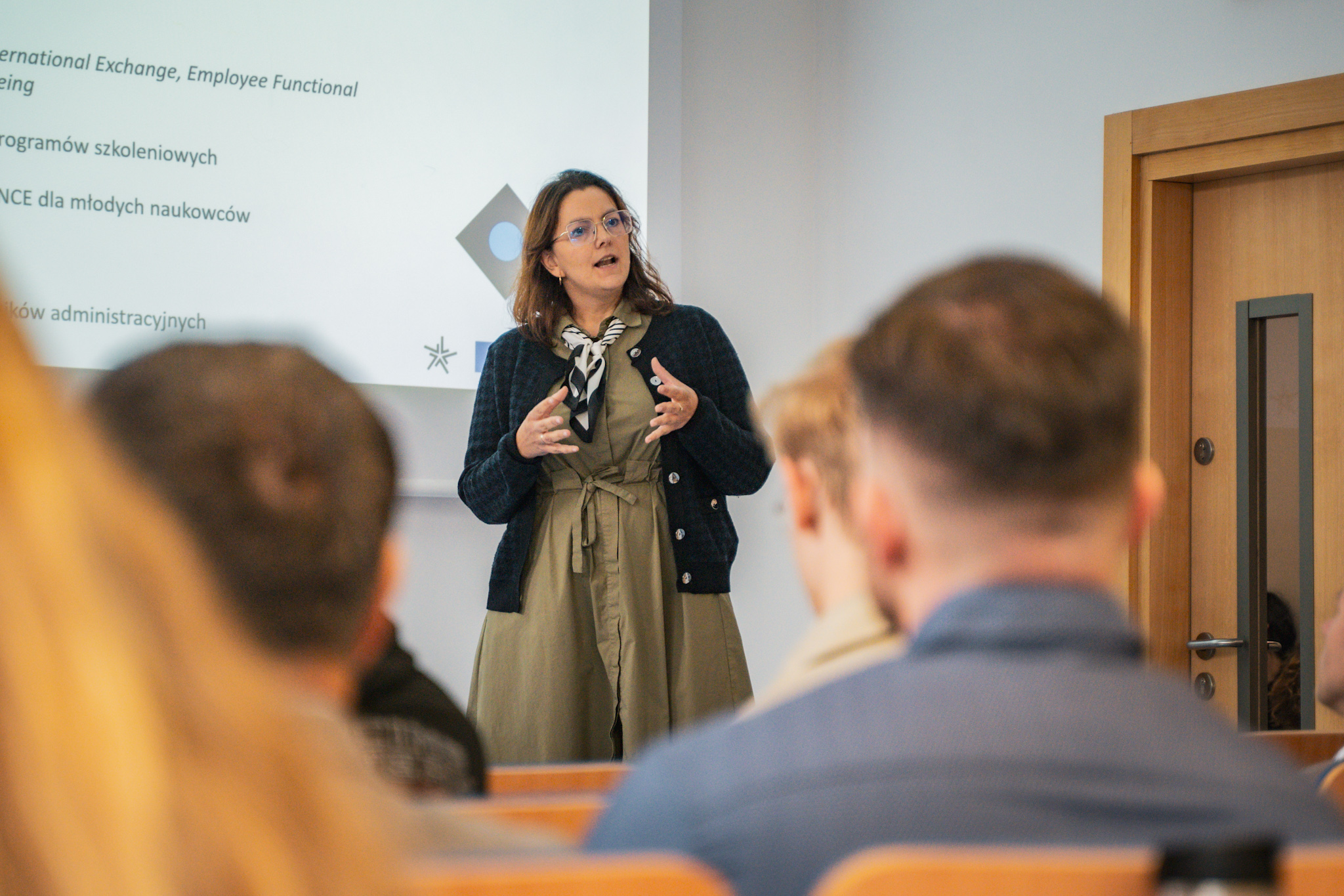 Podczas swojego wystąpienia Aleksandra Drelicharz szczegółowo przedstawiła założenia sojuszu ENHANCE oraz nowego projektu ENHANCE+. Wskazała na konkretne oferty dla różnych grup społeczności akademickiej: