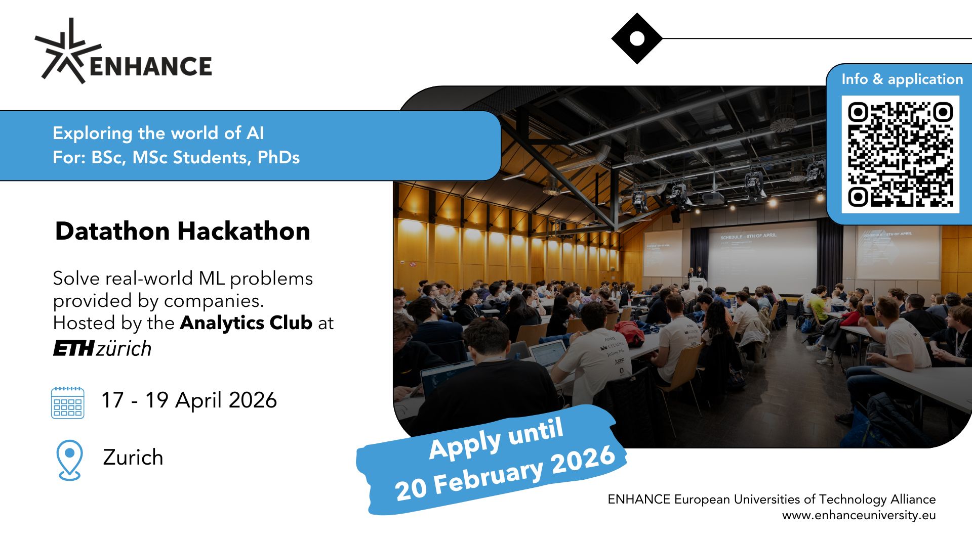 - Datathon Hackathon (17–19 kwietnia, Zurych) – wydarzenie dla studentów BSc, MSc oraz doktorantów, łączące analizę danych z pracą zespołową nad realnymi wyzwaniami.