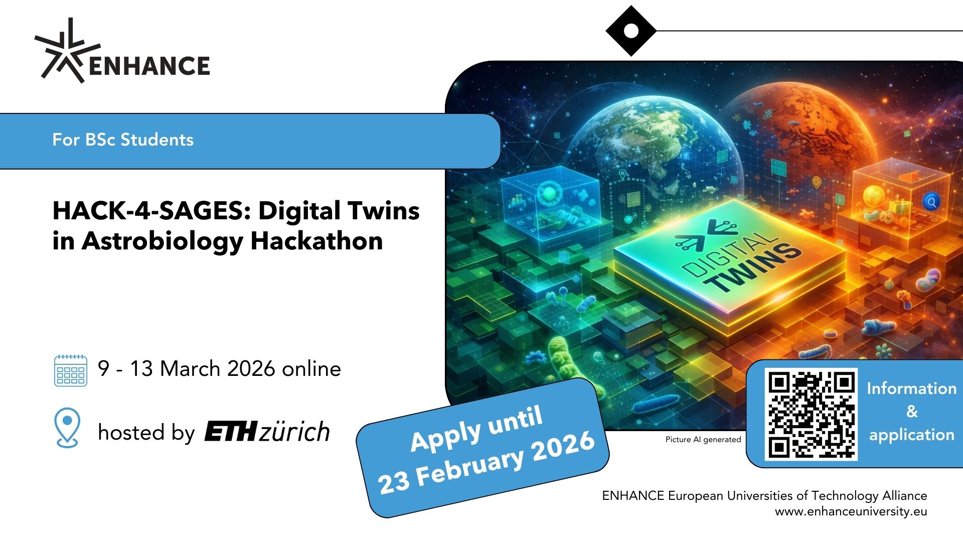 ENHANCE ILC Catalogue - HACK-4-SAGES (9–13 marca, online i stacjonarnie) – konkurs dla studentów BSc, którego zwycięzcy wyjadą do Szwajcarii na początku września.