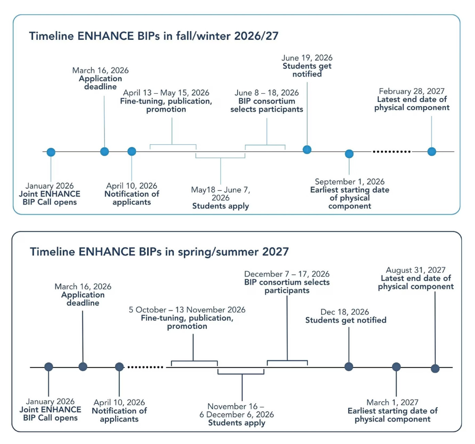 Zachęcamy kadrę akademicką w całym Sojuszu ENHANCE do rozważenia opracowania Blended Intensive Programme na rok akademicki 2026/27 (1 września 2026–31 sierpnia 2027). Jeśli masz pomysł lub chcesz nawiązać potencjalne partnerstwa, zdecydowanie zachęcamy do kontaktu z lokalną osobą kontaktową ENHANCE w celu uzyskania wskazówek i wsparcia. Wnioski należy składać w formacie PDF do właściwej instytucjonalnej osoby kontaktowej.