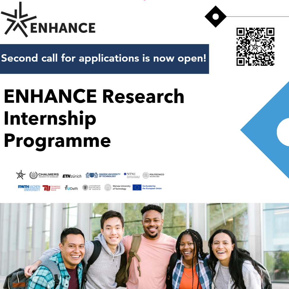 Program staży ma na celu wzmocnienie kształcenia opartego na badaniach, wspieranie mobilności akademickiej oraz rozwój współpracy w ramach Sojuszu ENHANCE, który tworzą: · Chalmers Tekniska Högskola AB · Eidgenössische Technische Hochschule Zürich · Norges Teknisk-Naturvitenskapelige Universitet · Politecnico di Milano · Rheinisch-Westfälische Technische Hochschule Aachen · Technische Universität Berlin · Technische Universiteit Delft · Universitat Politècnica de València