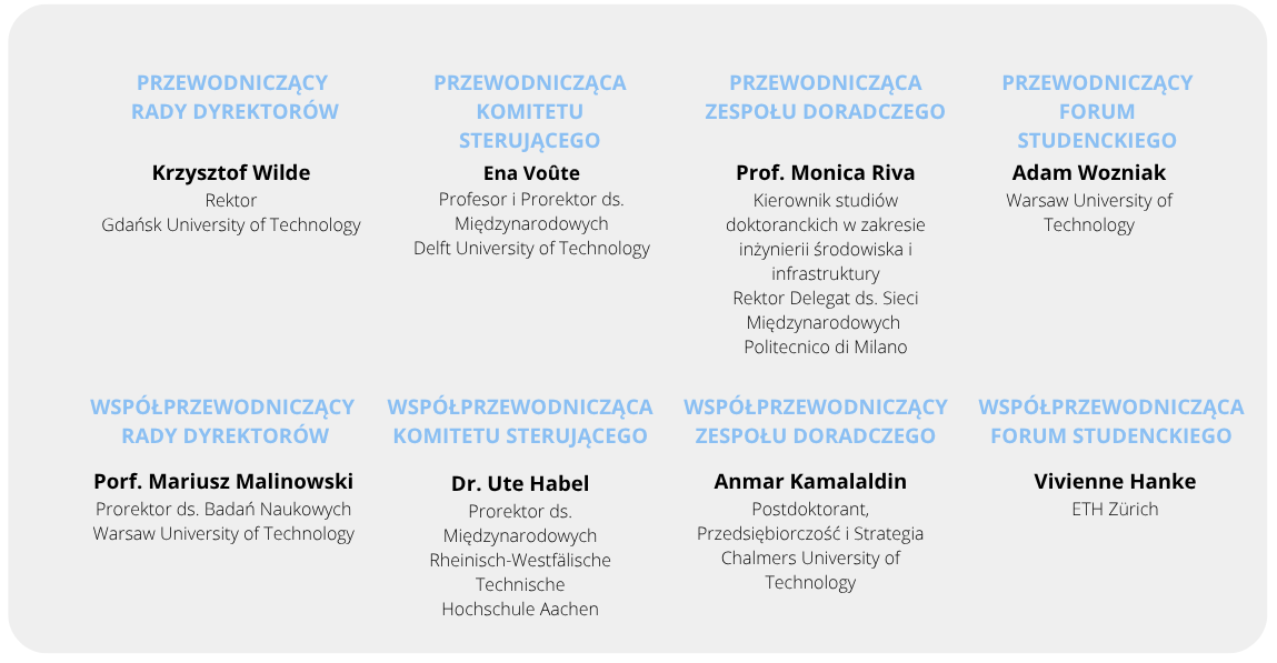 Opracowanie efektywnej, integracyjnej struktury zarządzania, promującej wartości europejskie i wzajemne zaufanie pomiędzy uczelniami, wraz z działaniami w zakresie świadomości wpływu, zaangażowania politycznego, budowania społeczności i upowszechniania wyników.