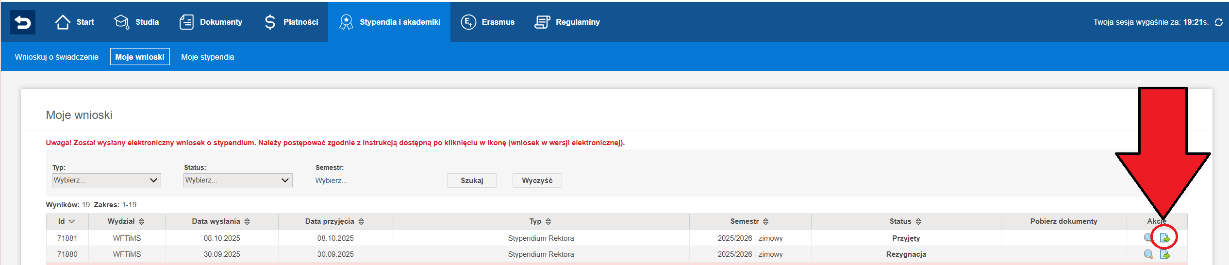 - Po wysłaniu wniosku możesz pobrać DW - dowód wysłania wniosku potwierdzający wpływ wniosku na uczelnię.