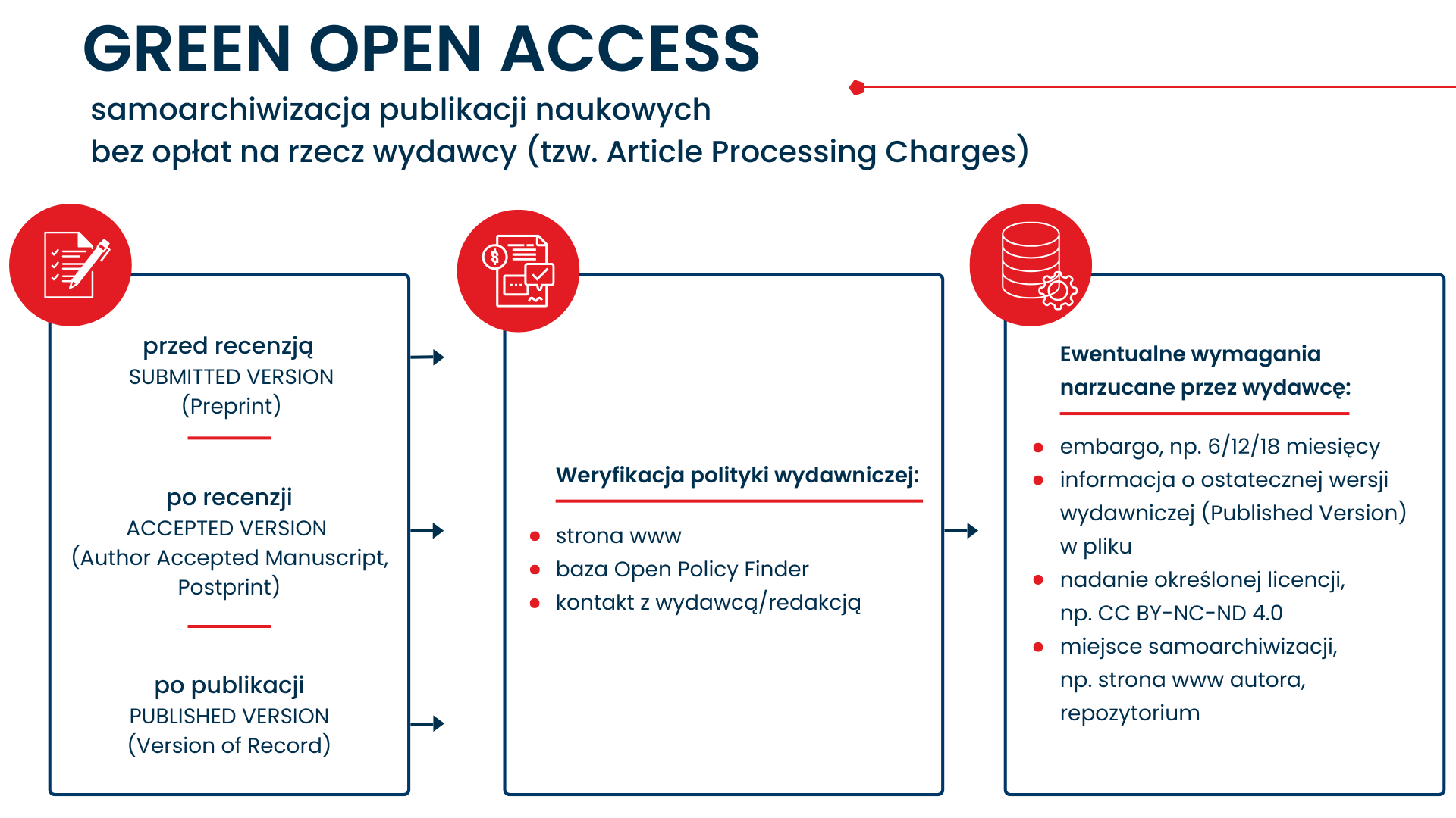 Należy pamiętać, że każde czasopismo przyjmuje własne zasady dotyczące OA, dlatego przed umieszczeniem w Internecie publikacji autor powinien upewnić się, że ma do tego prawo. Jak to zrobić? Pierwszym miejscem, które warto odwiedzić jest baza Open Policy Finder, która gromadzi informacje na temat polityk OA poszczególnych wydawców. Bazę można przeszukiwać po nazwie wydawnictwa, tytule czasopisma bądź numerze ISSN. Informacje o tym, w jakiej formie i w jaki sposób autor może rozpowszechniać swój artykuł powinny też znajdować się na stronie czasopisma, w ostateczności można również skontaktować się z jego redakcją.