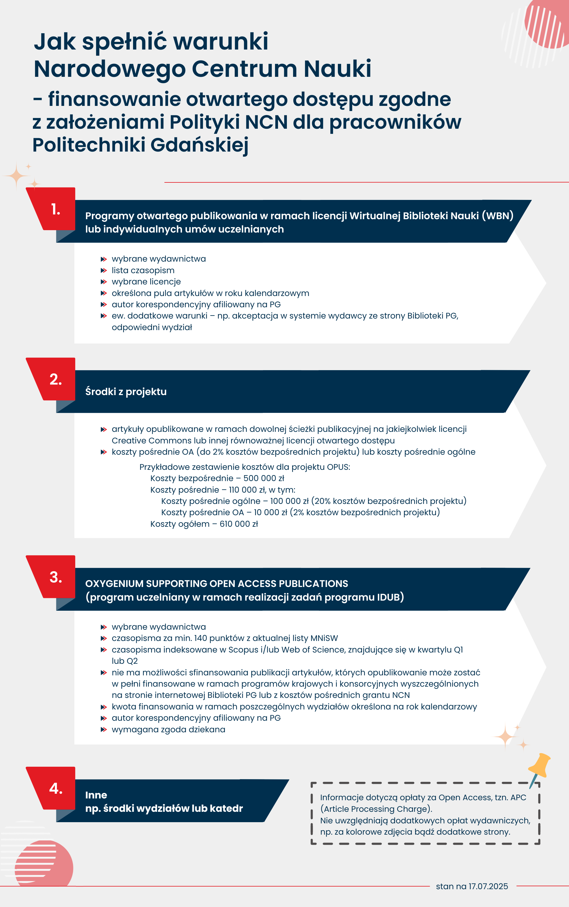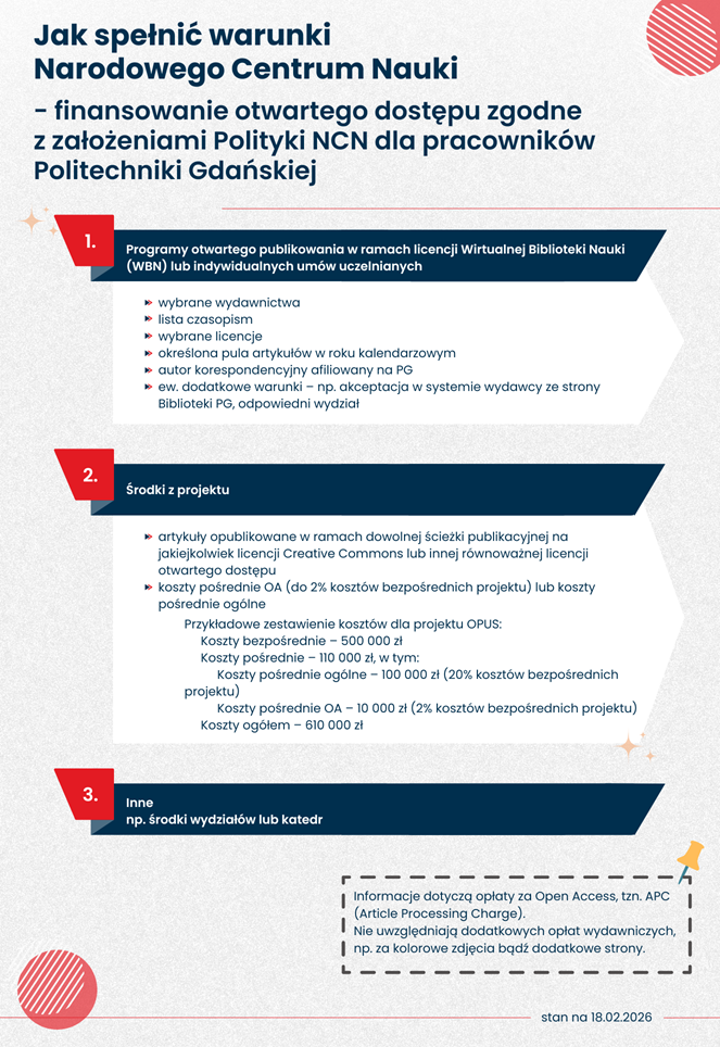 Nawigacja Open Access Modele Open Access Plan S cOAlition S Mechanizmy transformacyjne Polityka otwartości NCN Ścieżki publikacyjne NCN Finansowanie otwartego dostępu Programy publikowania OA Drapieżne czasopisma Baza polskich czasopism Horyzont Europa Przydatne linki Programy publikowania Open Access Open access w NCN