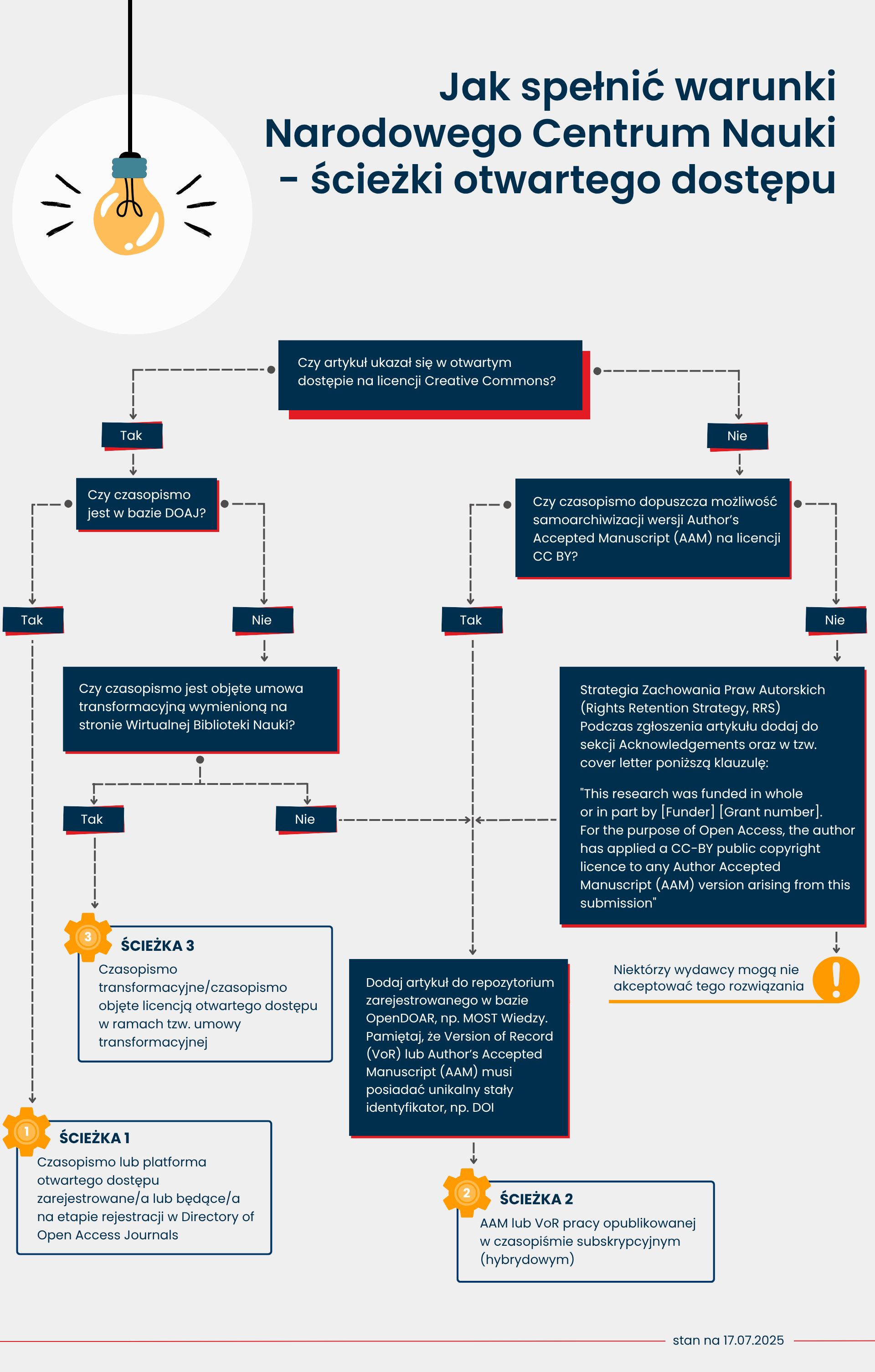"Polityka publikowania w otwartym dostępie wyników badań finansowanych przez Narodowe Centrum Nauki" dopuszcza możliwość publikowania artykułów w otwartym dostępie lub w modelu zamkniętym (subskrypcyjnym), bez obowiązku udostępniania wersji autorskiej publikacji (ang. Author Accepted Manuscript, AAM) lub preprintu w repozytorium.