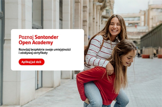 Zarejestruj się na platformie Santander Open Academy i korzystaj ze szkoleń z natychmiastowym dostępem. Znajdź szkolenie dla siebie – do wyboru masz m.in język angielski, Excel, Power Bi, Python, sztuczną inteligencję (AI), zarządzanie projektami, krytyczne i strategiczne myślenie, efektywną komunikację w mowie i piśmie, przywództwo, czy wellbeing. Po ukończeniu szkolenia otrzymujesz certyfikat.