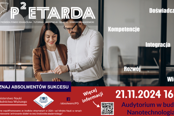 Zapraszamy na spotkania z absolwentami Politechniki Gdańskiej, którzy podzielą się swoimi doświadczeniami. Cykl tych wydarzeń realizowany jest dla studentów w ramach projektu PETARDA.