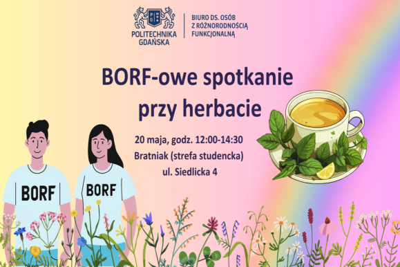 BORF na ADAPCIAK-u 2025 Konferencja REHA FOR THE BLIND 2025 Szkolenia świadomościowe BORF na wizycie studyjnej w Białymstoku BORF na „Just relax” Wiosenne spotkanie przy herbacie Warsztaty facylitacji Lego® Serious Play® - Tydzień Zdrowia Psychicznego BORF z wizytą w Welcome Office! BORF na Dniu Otwartym PG 2025 BORF z wizytą na Politechnice Warszawskiej BORF na ADAPCIAK-u 2024 Wyjątkowa wycieczka po Politechnice Gdańskiej Tydzień Zdrowia Psychicznego na Politechnice Gdańskiej I Ogólnopolska Konferencja Tematyczna - Biała Podlaska 2024 Lekcje na PG z podstaw Polskiego Języka Migowego VI Akademickie Dni Integracji - Wrocław 2024 Pomorskie Pola Nadziei 2024 BORF na warsztatach z asertywności Ogólnopolski Dzień Otwarty PG 2024 Drugie BORFowe spotkanie przy herbacie BORF-owe spotkanie przy herbacie Tydzień Zrównoważonego Rozwoju PG Punkt informacyjny w Strefie Studenckiej