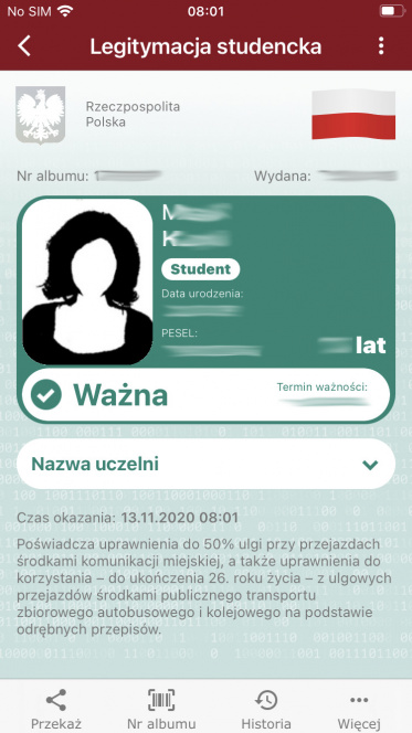 mLegitymacja jest dokumentem elektronicznym, który ma taką samą moc prawną jak tradycyjna plastikowa e-legitymacja.