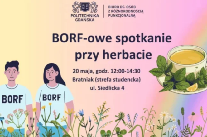 Biuro ds. Osób z Różnorodnością Funkcjonalną (BORF) zaprasza wszystkich studentów i doktorantów na spotkanie przy herbacie, które odbędzie się we wtorek, 20 maja 2025 r.