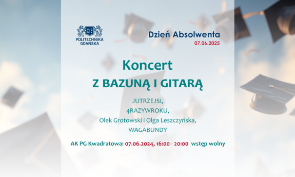 Stowarzyszenie Absolwentów PG zaprasza na Koncert z Bazuną i Gitarą, który odbędzie się w Klubie Kwadratowa w ramach DNIA ABSOLWENTA 7 czerwca br.