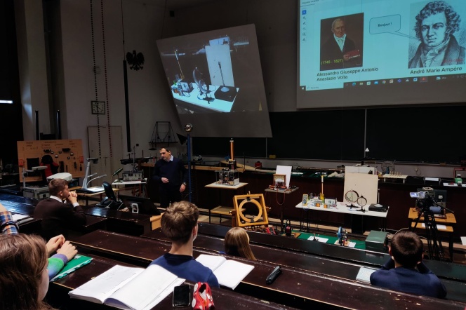 Zgodnie z programem wydarzenie rozpoczął wykład prowadzony przez dr. inż. Ireneusza Linerta, który przybliżył uczestnikom zagadnienia związane z elektrycznością i magnetyzmem. Poruszono takie tematy, jak: