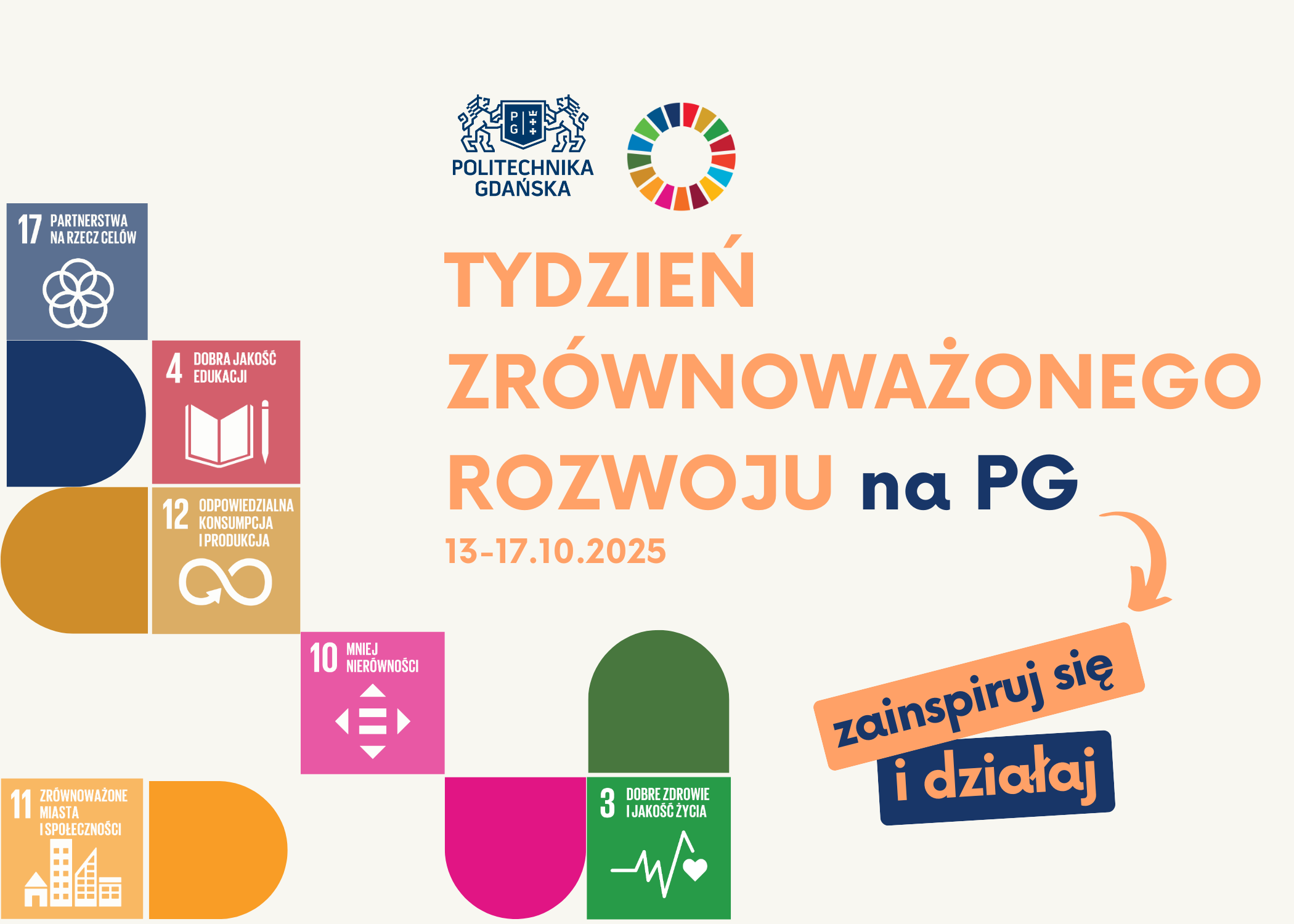 Serdecznie zapraszamy do udziału w drugiej edycji Tygodnia Zrównoważonego Rozwoju na Politechnice Gdańskiej! Tegoroczne, pięciodniowe wydarzenie połączy inspirujące spotkania, warsztaty oraz inicjatywy na rzecz odpowiedzialnego i świadomego działania.