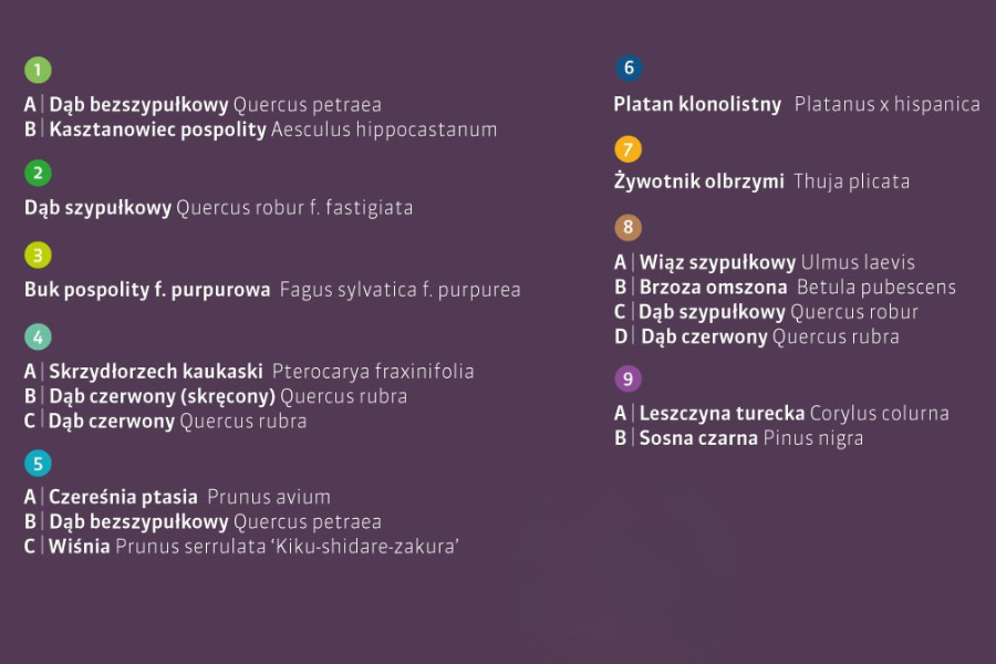 Poniżej znajduje się charakterystyka poszczególnych gatunków drzew.