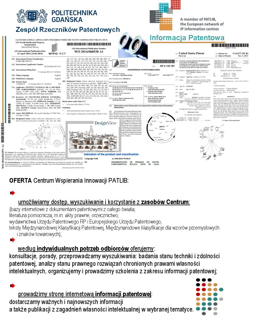 - w bazach patentowych, także komercyjnych pg.edu.pl/zrp/wspieranie-innowacji-patlib/bazy-patentowe-line